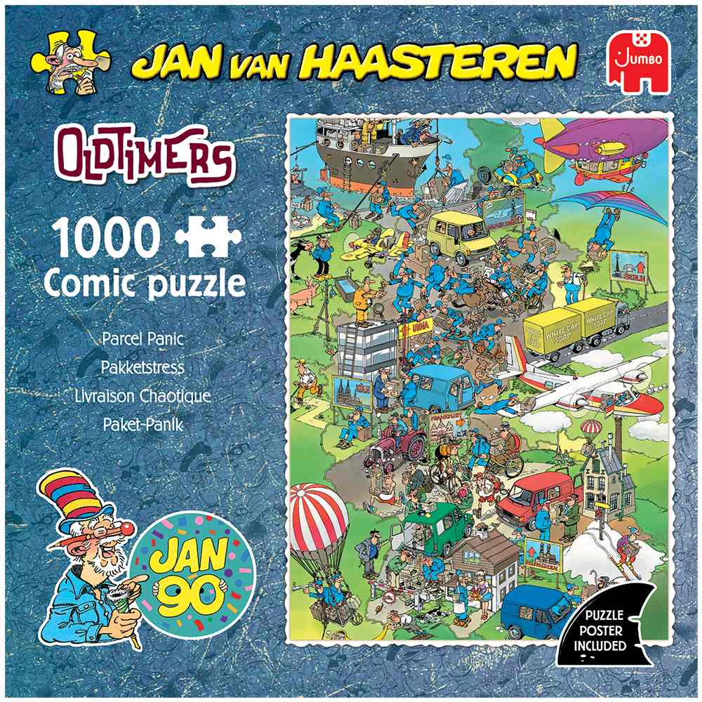 This is the fourth puzzle in the Oldtimer line. Parcel Panic was drawn in 1987 by Jan van Haasteren and is now being released as a puzzle for the very first time.